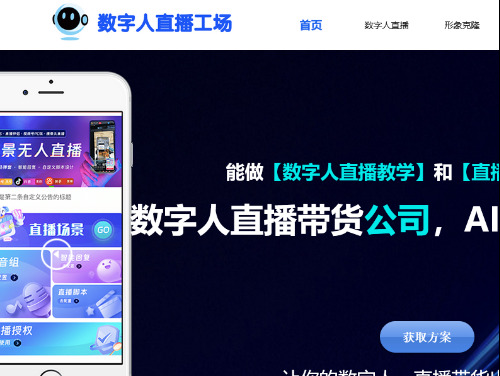 數(shù)字人直播該網(wǎng)站屬于其它行業(yè)淺藍色系風格