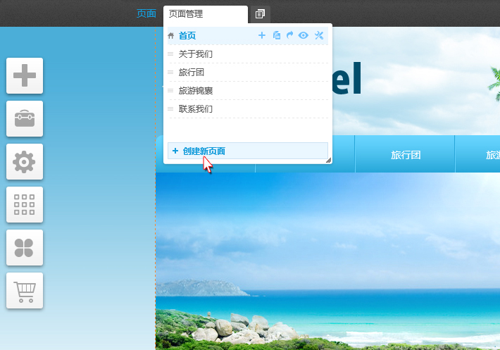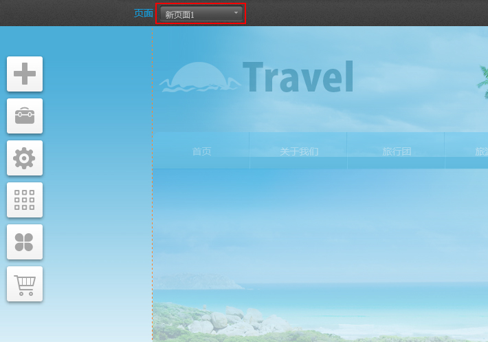 e.頁面的功能按鈕,從左到右為:添加子頁面,復(fù)制頁面,復(fù)制為底版,在導(dǎo)航條隱藏與否,頁面屬性,刪除頁面,后面會(huì)詳細(xì)介紹 f.新建一個(gè)頁面,點(diǎn)擊會(huì)彈出新窗口
