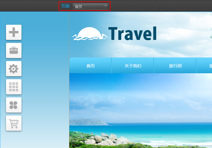 頁面:當(dāng)前編輯的是普通頁面,會(huì)直接顯示在導(dǎo)航條上,除非設(shè)置了“導(dǎo)航條上隱藏”。 “首頁”:現(xiàn)有所有頁面名稱中的一個(gè),點(diǎn)擊此處會(huì)出現(xiàn)所有頁面名稱的列表,從而進(jìn)入各個(gè)頁面的編輯。如下圖: