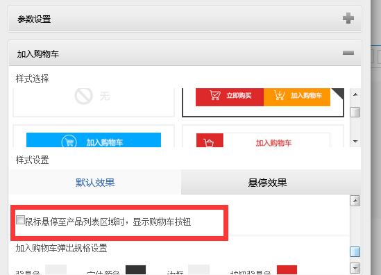 鼠標懸停至產(chǎn)品列表區(qū)域時,顯示購物車按鈕