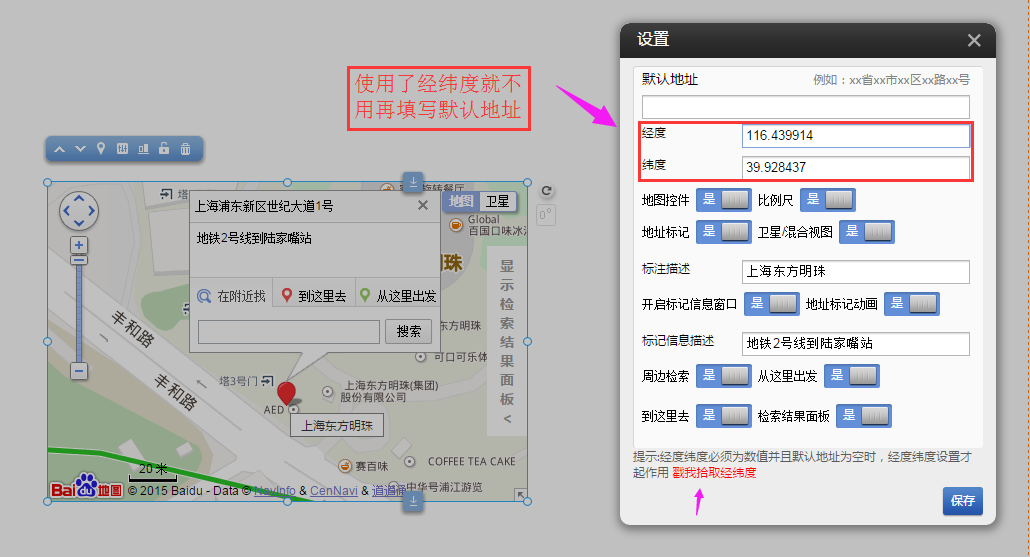 另外還可以使用經(jīng)緯度來定位,填寫了經(jīng)緯度就不用再填寫默認地址。