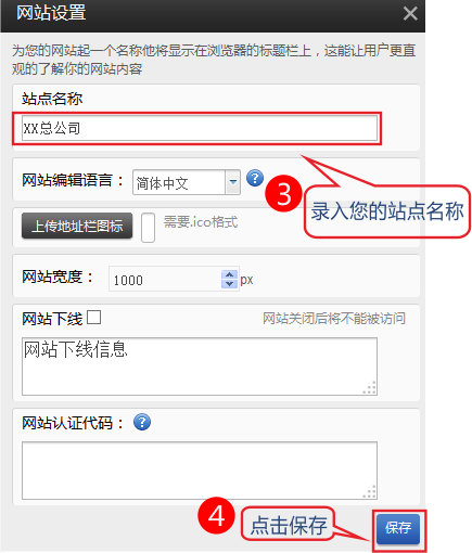2.錄入您的站點(diǎn)名稱-保存