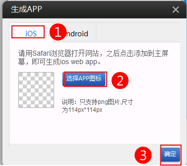 注意:app圖標(biāo)僅支持png圖片,尺寸為114px*114px