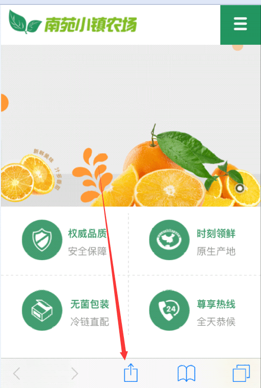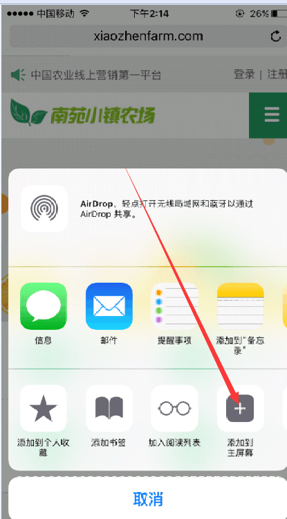 設(shè)置好后讓用戶Safari瀏覽器打開網(wǎng)站,之后點(diǎn)擊添加到主屏幕,即可生成ios web app