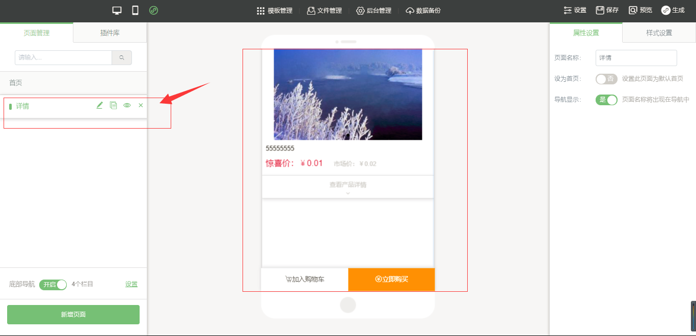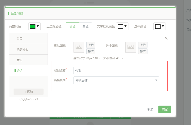 2.在小程序編輯器中,點擊“頁面管理”-“設(shè)置”-“添加”設(shè)置分銷店鋪并將它鏈接至“分銷店鋪”頁面中,在頁面管理中一定要添加“產(chǎn)品詳情”頁面,然后點擊保存即可,點擊“我要分銷”時,如果用戶不是分銷商則會出現(xiàn)一個彈出框,點擊確定之后,會跳轉(zhuǎn)到注冊頁面,如圖所示: