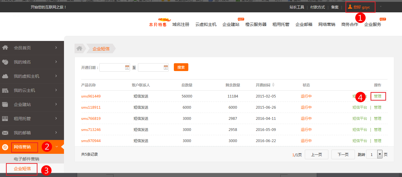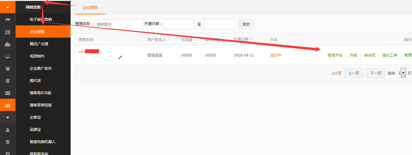 1.依次點(diǎn)擊 網(wǎng)絡(luò)營(yíng)銷--》企業(yè)短信-》管理-》查看登陸密碼