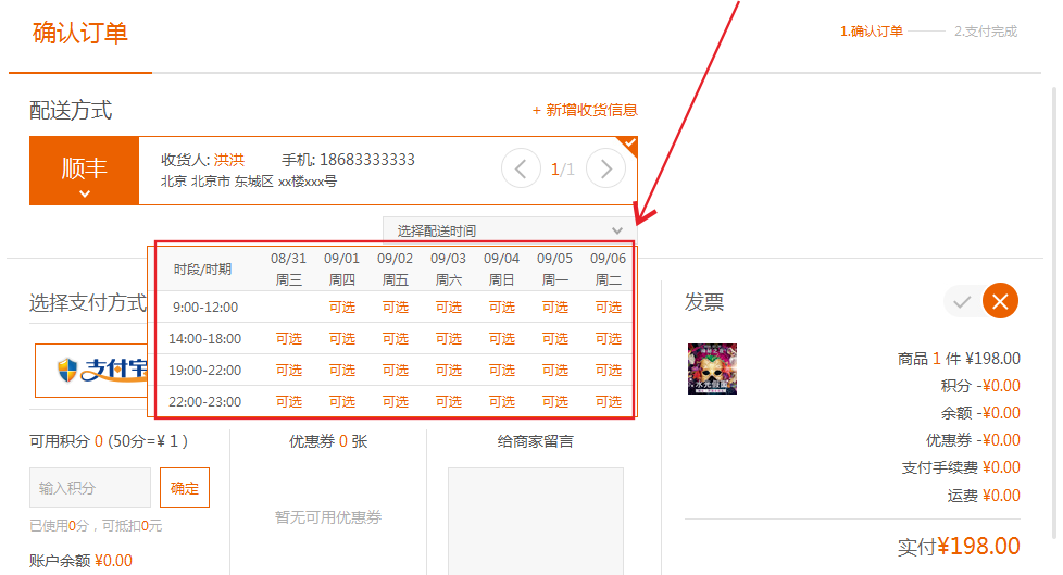 2.設(shè)置配送時(shí)間段,錄入您需要的描述