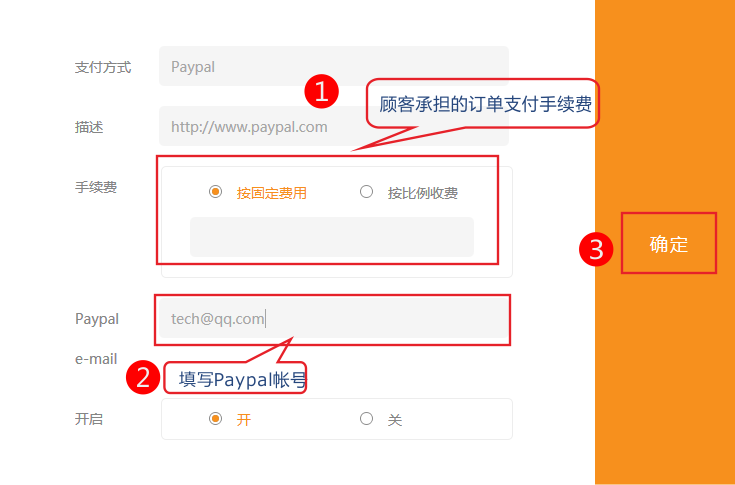 2.設(shè)置支付手續(xù)費(fèi),填寫paypal 帳號(hào)保存