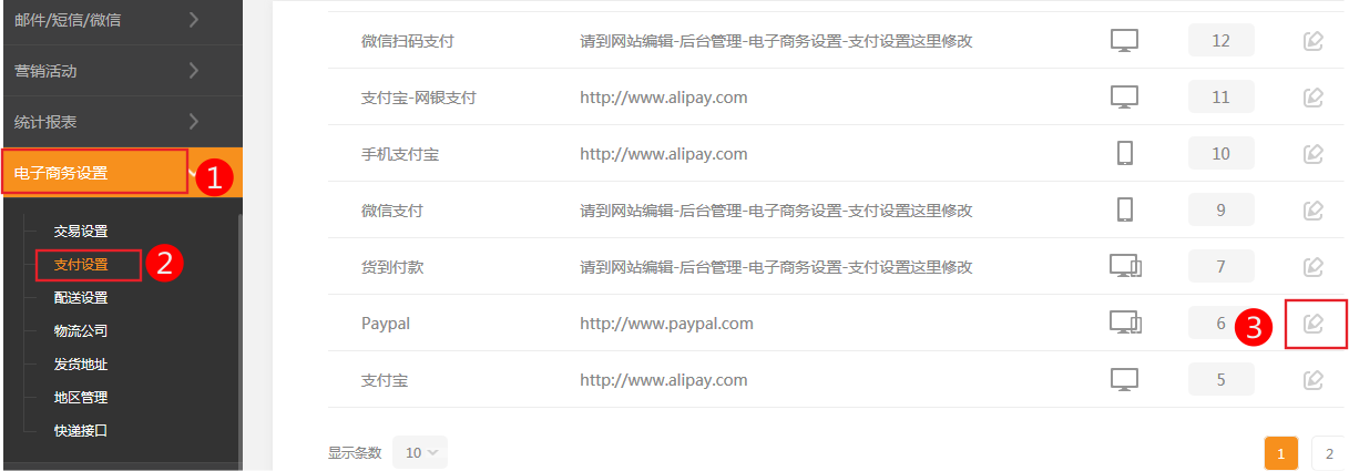 1.依次 點(diǎn)擊 后臺(tái)管理-電子商務(wù)設(shè)置-支付設(shè)置-編輯貝寶