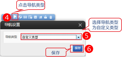 2.在導(dǎo)航上方設(shè)置導(dǎo)航類型為自定義。