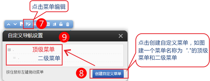 1.依次點擊添加-》將導(dǎo)航欄拖拽到您需要的位置。