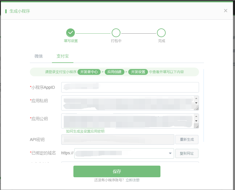 帳號申請完成后接下來獲取小程序發(fā)布時需要填寫的 小程序AppID、應(yīng)用私鑰、支付寶公鑰