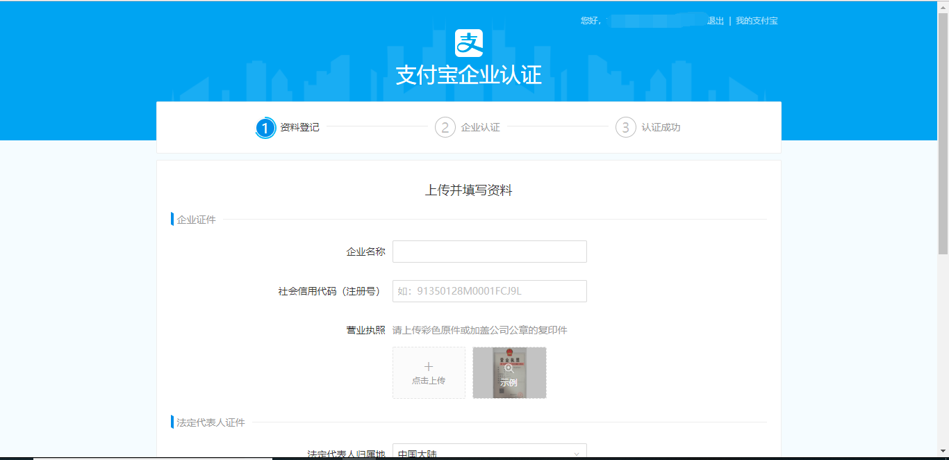 注冊賬號填寫郵箱賬號后,在郵箱中會收到一封郵件,點(diǎn)擊“繼續(xù)注冊”,填寫完所有信息后會出現(xiàn)“企業(yè)實(shí)名填寫頁面”,點(diǎn)擊進(jìn)入,填寫信息通過認(rèn)證即可,如圖所示: