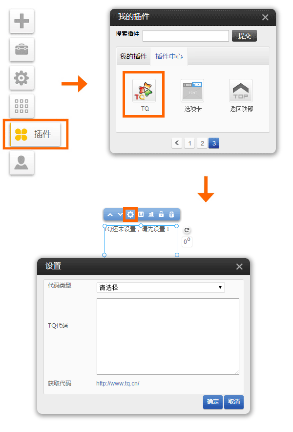 1 PC版新增TQ在線客服插件使用方法:進(jìn)入網(wǎng)站編輯-〉點(diǎn)左側(cè)插件圖標(biāo)-〉插件中心,找到TQ圖標(biāo),點(diǎn)啟用