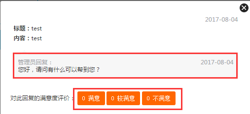 7,即可查看到管理員的留言回復(fù),還可以對(duì)回復(fù)進(jìn)行滿意度評(píng)價(jià)。