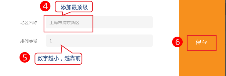 保存后,在列表中點(diǎn)擊添加二級(jí)地區(qū)