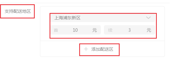 在添加或修改配送方式時(shí),選擇指定地區(qū)及費(fèi)用,使用剛才自定義的地區(qū)