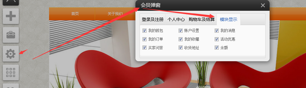 依次點擊設置 -》會員彈窗-》會員模塊把不需要顯示的模塊勾選去掉即可。