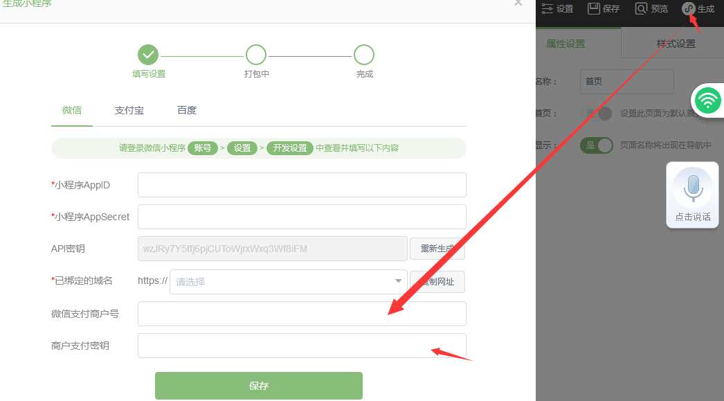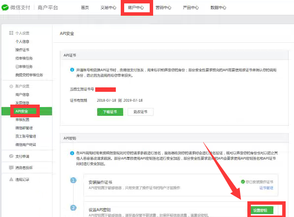三.重置 商戶(hù)支付密鑰后填回網(wǎng)站后臺(tái)。