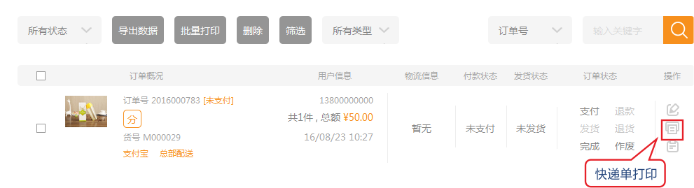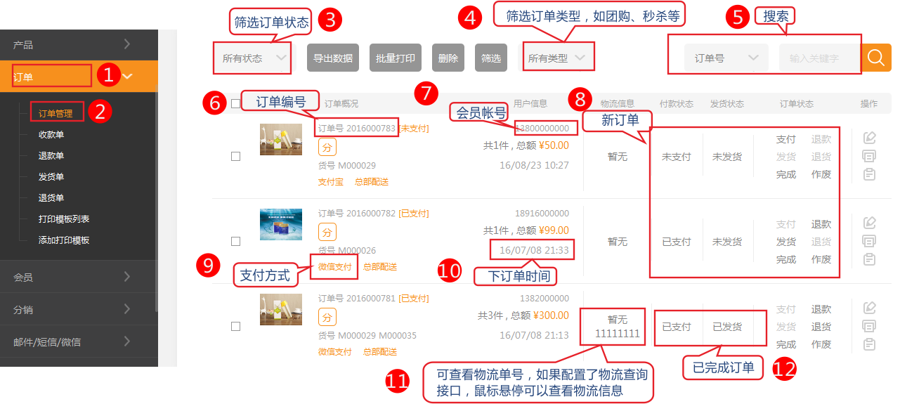 后臺(tái)依次點(diǎn)擊 訂單---訂單管理,可以看到訂單界面