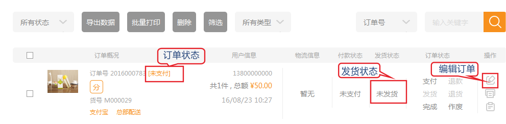 訂單狀態(tài)可通過對(duì)訂單進(jìn)行處理來改變