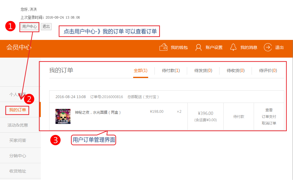如果顧客注冊(cè)會(huì)員后購買,則登陸會(huì)員中心也可看到訂單信息