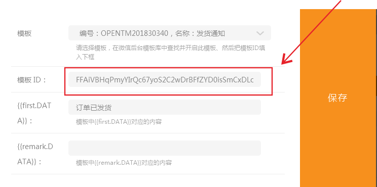 2:在網(wǎng)站后臺微信模板設(shè)置中編輯、并查看對應(yīng)的模板編號