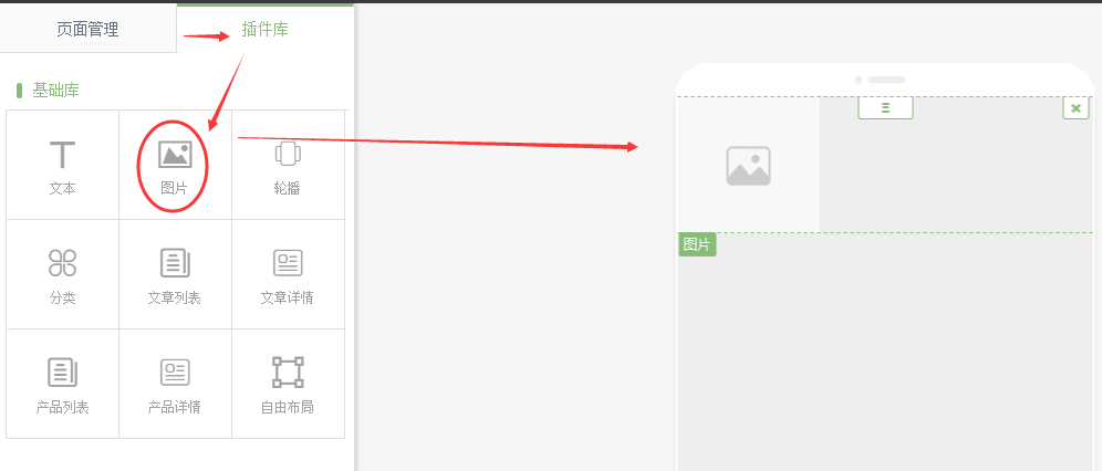 插件庫中,將圖片拖拽到頁面中