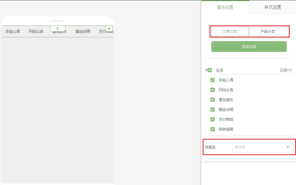 雙擊分類模塊,可以添加分類,勾選分類,以及對分類模塊設(shè)置鏈接等。