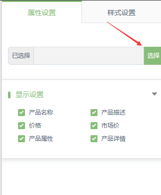 可以選擇指定的某一篇產(chǎn)品來顯示!產(chǎn)品名稱 價格 產(chǎn)品屬性等也可以取消勾選,不勾選表示不顯示。