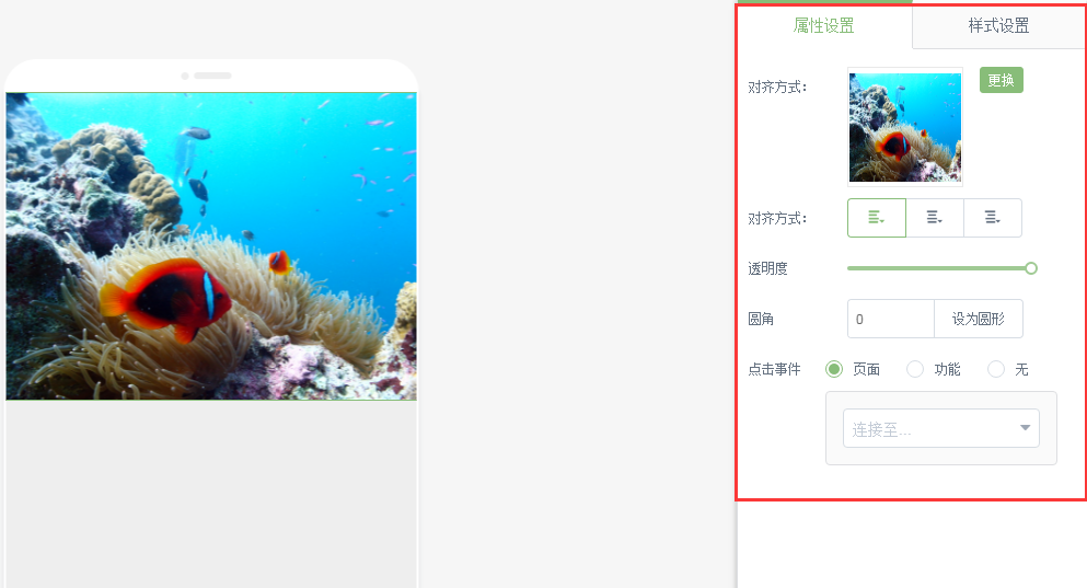 雙擊圖片模塊,可以更換圖片、設(shè)置鏈接的頁面等。