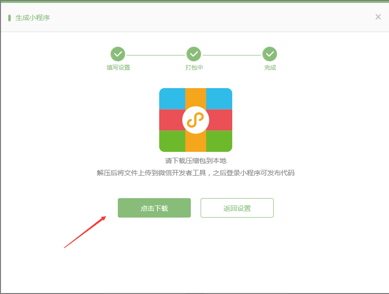 點擊頂部的生成小程序按鈕