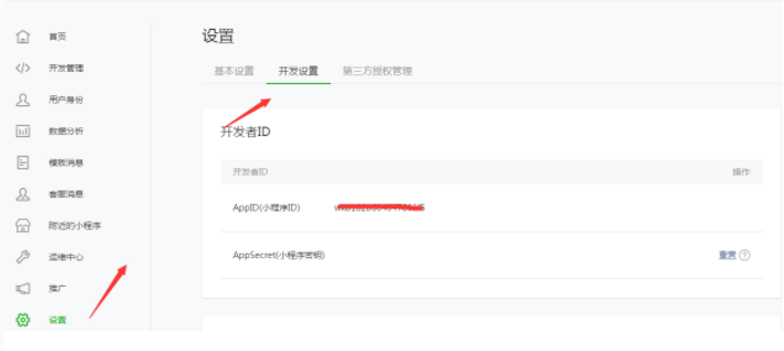 小程序AppId和AppSecret:小程序認(rèn)證通過后,可以進入小程序平臺的設(shè)置---開發(fā)設(shè)置中獲取