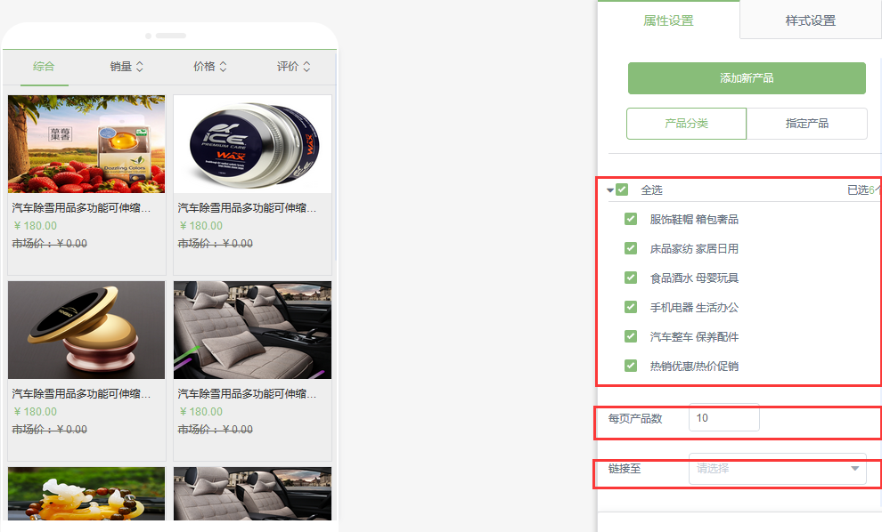 注意:產(chǎn)品列表只能鏈接到產(chǎn)品詳情插件所在的頁面。