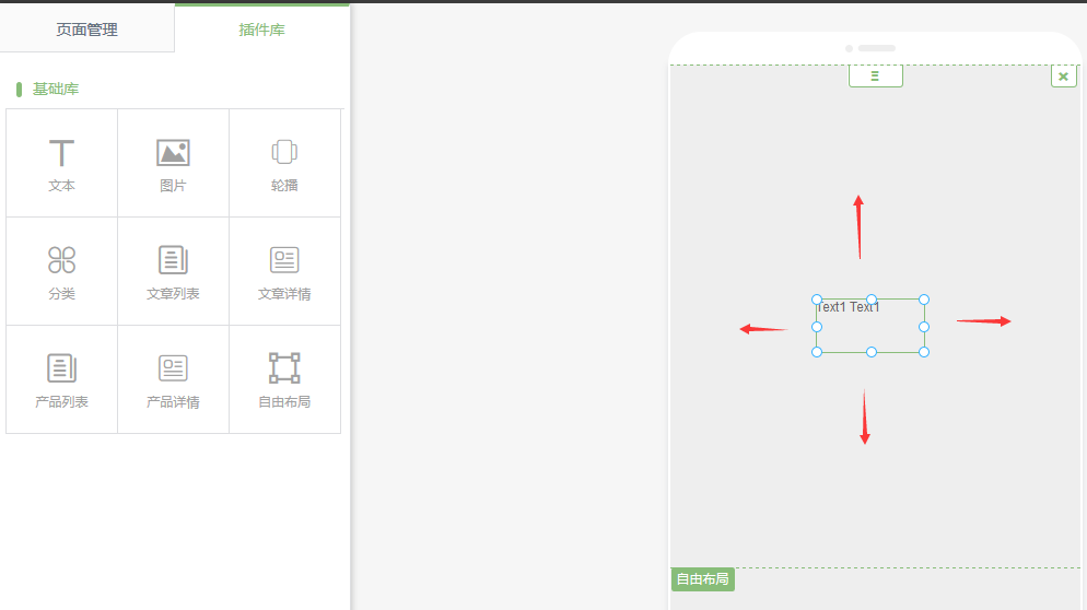 插件庫中,將自由布局拖拽到頁面中