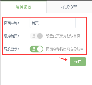 選中某個頁面之后,可以在右側(cè)-屬性設(shè)置里邊修改網(wǎng)頁名稱,設(shè)置此頁面是否為默認(rèn)首頁,是否出現(xiàn)在導(dǎo)航中