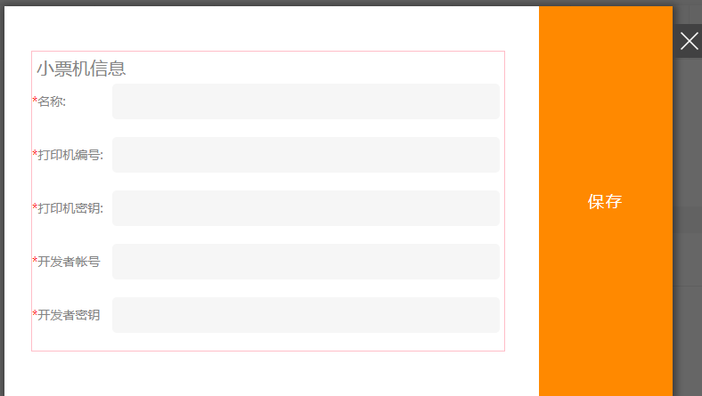 3.點(diǎn)擊“打印機(jī)”,將需要打印的小票信息填寫正確,(注:打印機(jī)暫時(shí)只支持飛鵝打印機(jī),開發(fā)者賬號(hào)及密鑰在飛鵝官網(wǎng)申請(qǐng)注冊(cè)即可),保存后,點(diǎn)擊“編輯”按鈕,可以對(duì)打印的小票進(jìn)行設(shè)置需要的信息顯示項(xiàng),如圖所示: