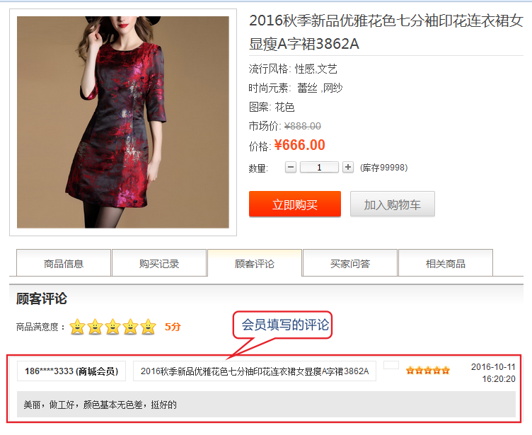 商品頁評(píng)論的前臺(tái)表現(xiàn)
