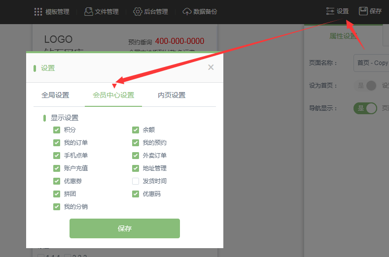 在網(wǎng)站后臺-》設(shè)置-》會員中心設(shè)置不需要顯示的項(xiàng)目(注意設(shè)置后需要重新發(fā)布)