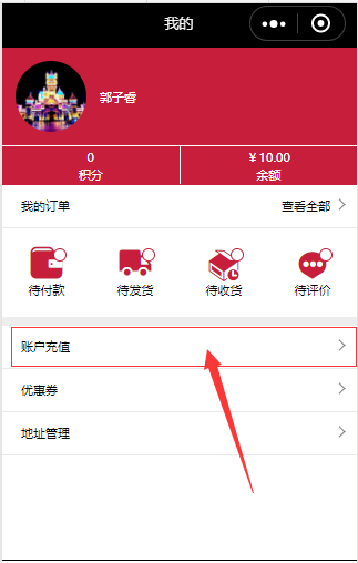 ⑨.在小程序中,點(diǎn)擊“我的”-“會(huì)員中心”中會(huì)有“賬戶充值”,點(diǎn)擊之后,進(jìn)入賬戶充值頁面,需要注意的是,小程序使用此功能時(shí),需要從新發(fā)布才可以正常使用