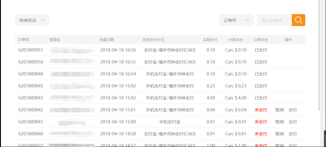 ⑥.后臺(tái)---會(huì)員---會(huì)員交易里,點(diǎn)擊“在線支付查看”,管理員可以查看用戶的在線支付訂單