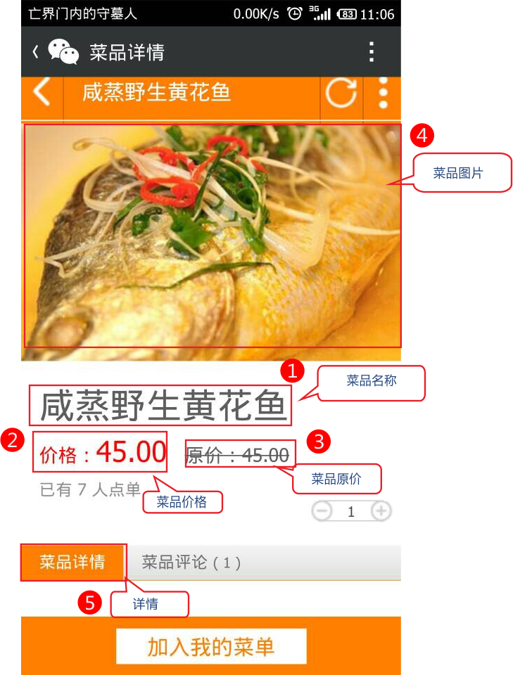 下面是一個最簡單的菜品在商店網(wǎng)頁顯示的