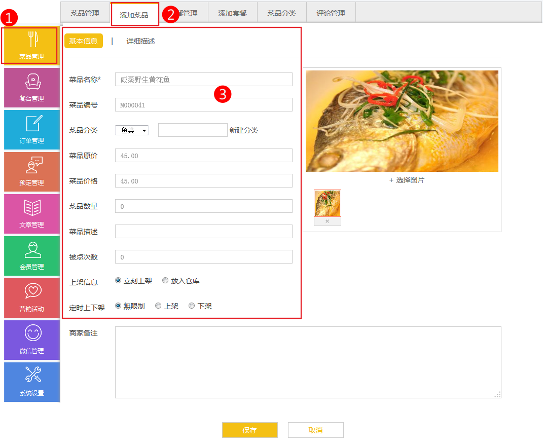 產(chǎn)品編號:添加菜品編號,可能會更好讓你管理你的菜品,特別是當您的菜品已經(jīng)很多的時候。