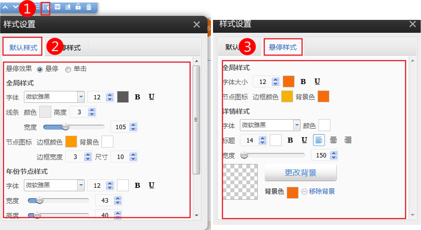 4.樣試設(shè)置中可以設(shè)置默認(rèn)和懸停樣式,如下圖