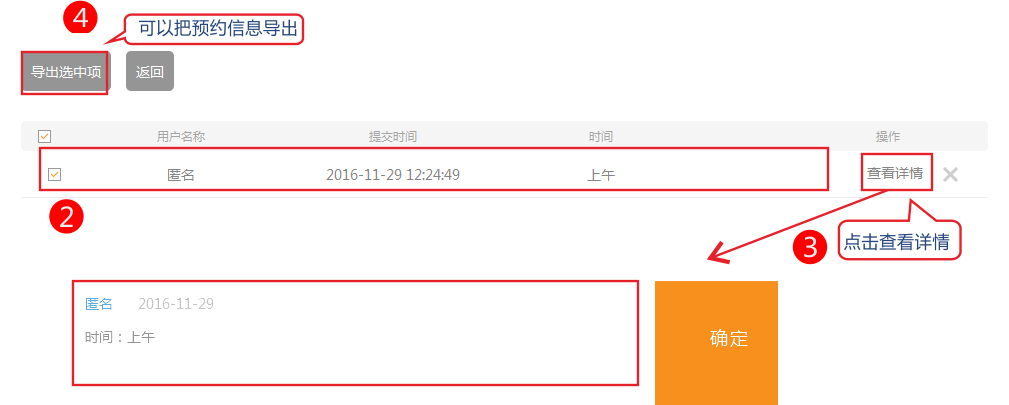 可以看到詳細(xì)的預(yù)約信息并且可以導(dǎo)出