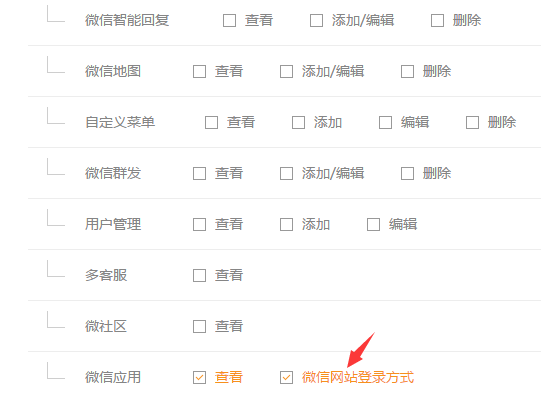 微信管理---微信應(yīng)用這塊,增加了微信網(wǎng)站登錄方式的權(quán)限
