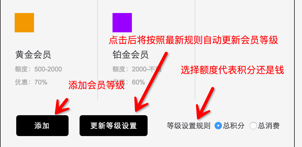 成為會員的方式有通過掃碼可以獲取用戶信息的二維碼即可成為會員,還可以通過微信前端綁定手機成為會員。當會員進行消費時會根據(jù)設(shè)置的會員等級的規(guī)則實時的對用戶的會員等級進行調(diào)整。