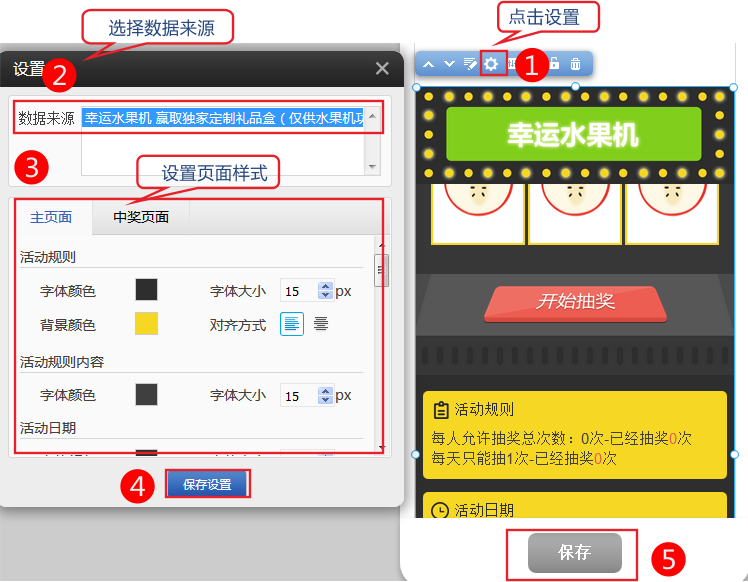 四、點(diǎn)擊設(shè)置-》選擇活動(dòng)來源及樣式