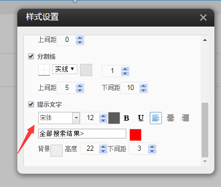 12.在建站編輯器中,拖入“站內(nèi)搜索”插件,點(diǎn)擊樣式設(shè)置,在樣式5、6、7、8、9中的設(shè)置項(xiàng)中增加“搜索范圍”的設(shè)置項(xiàng),如圖所示: