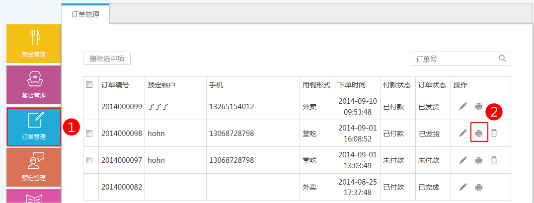 在訂單管理中找到需要打印的訂單后點擊打印圖標(biāo)